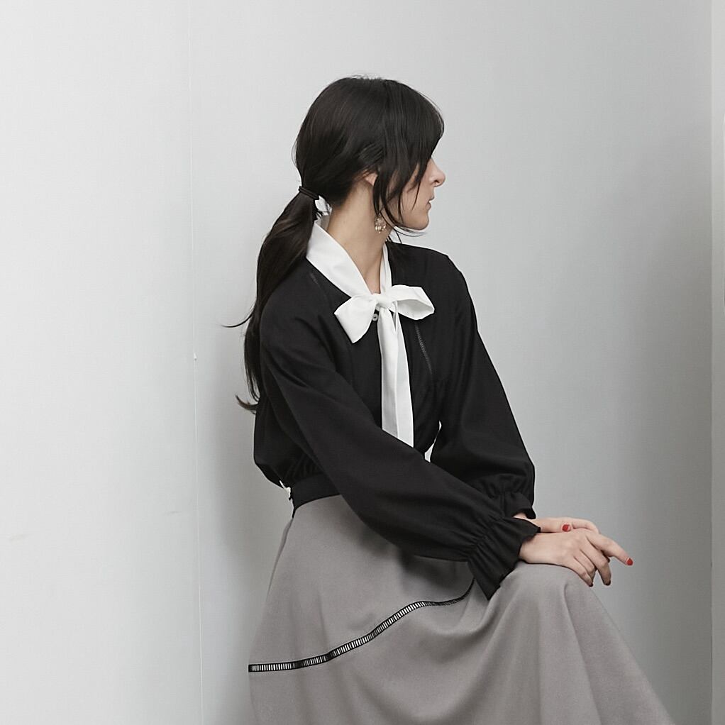 リボン部分はハリ感のある素材を使用し、甘めデザインも程よくシャープな雰囲気に。