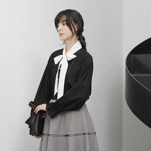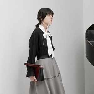 配色リボンがアクセントとなったエレガントなギャザーブラウス。
