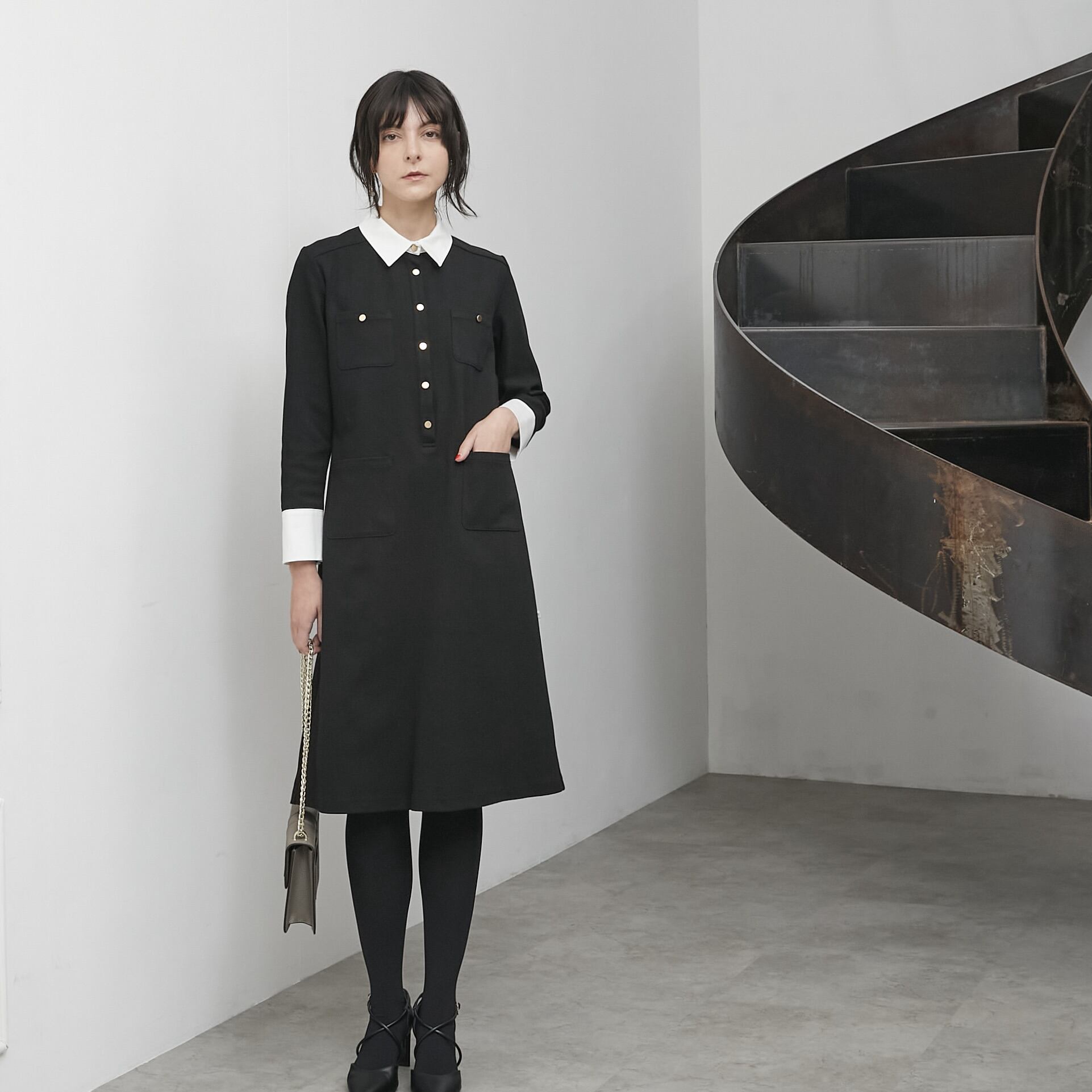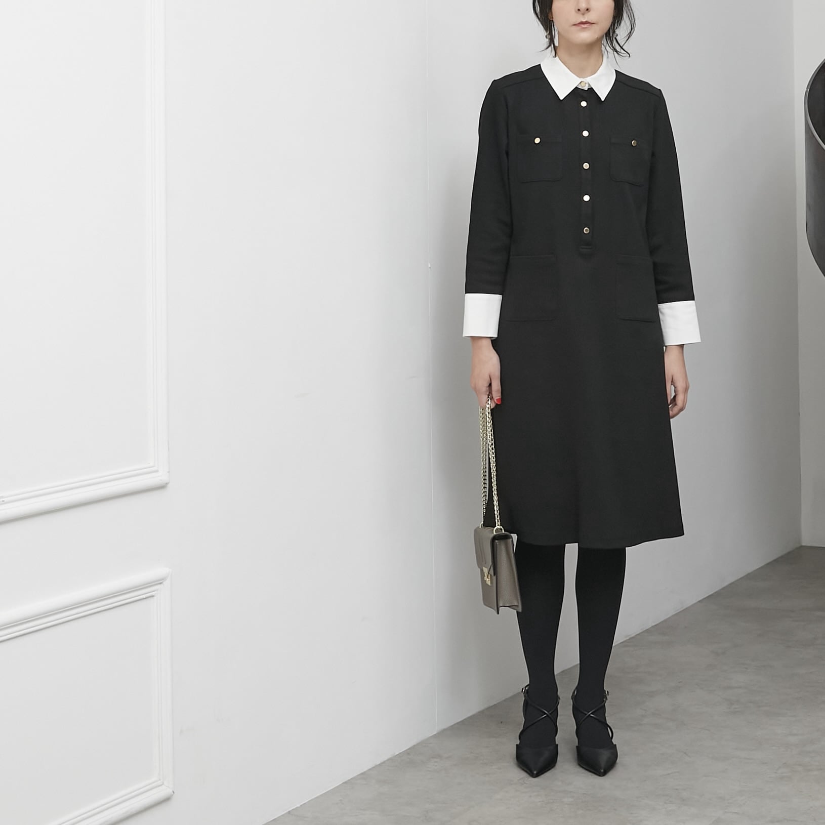 白襟と白カフスがきちんと感を感じられるワンピース。