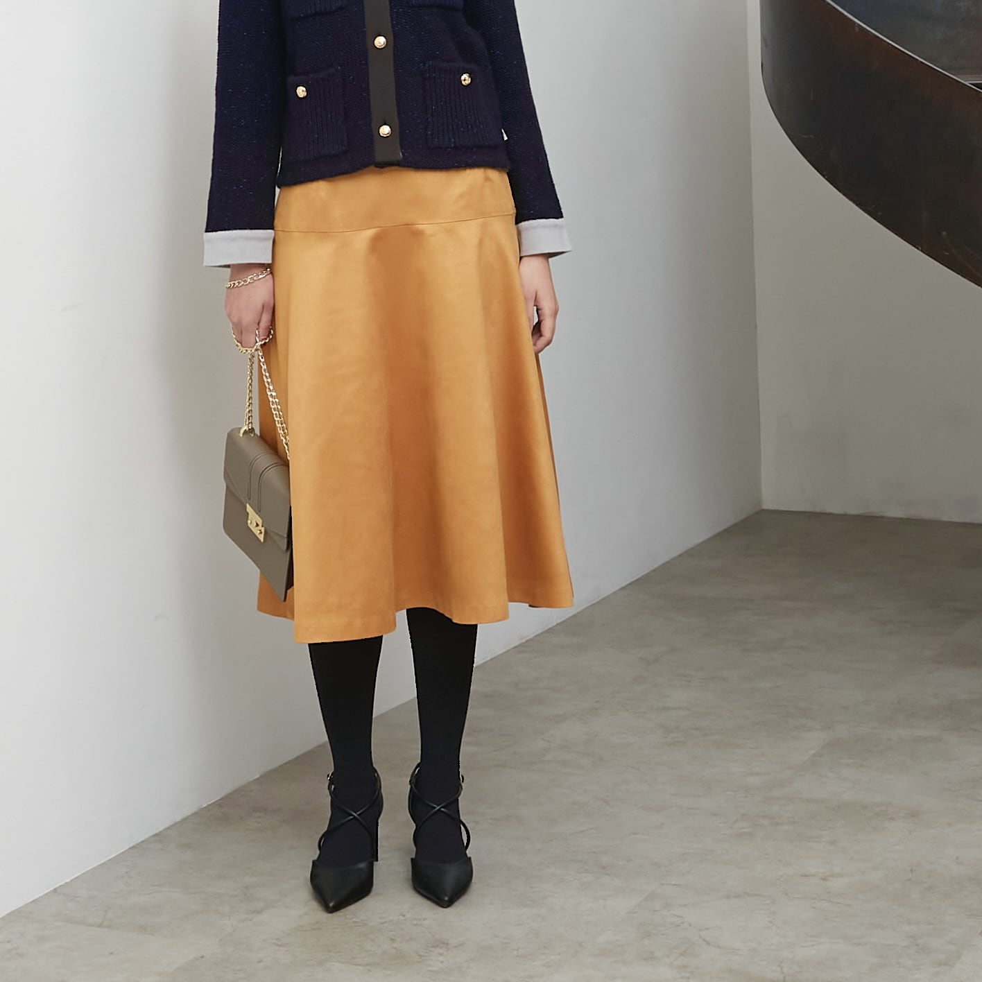 トップスや小物次第で幅広いシーンに着回しができ、活躍してくれるスカートです。