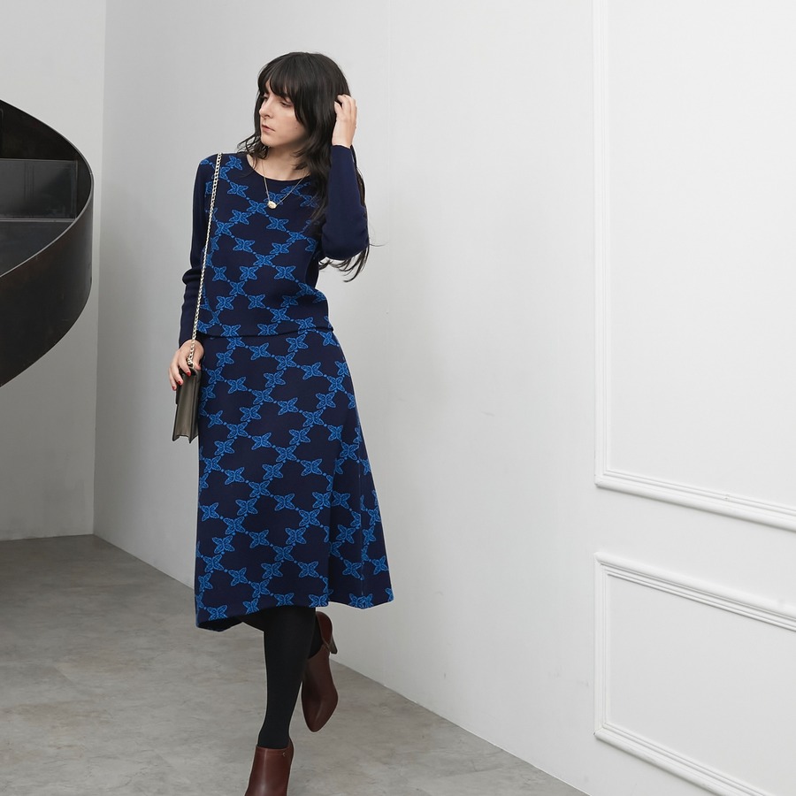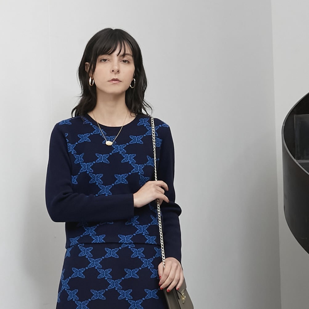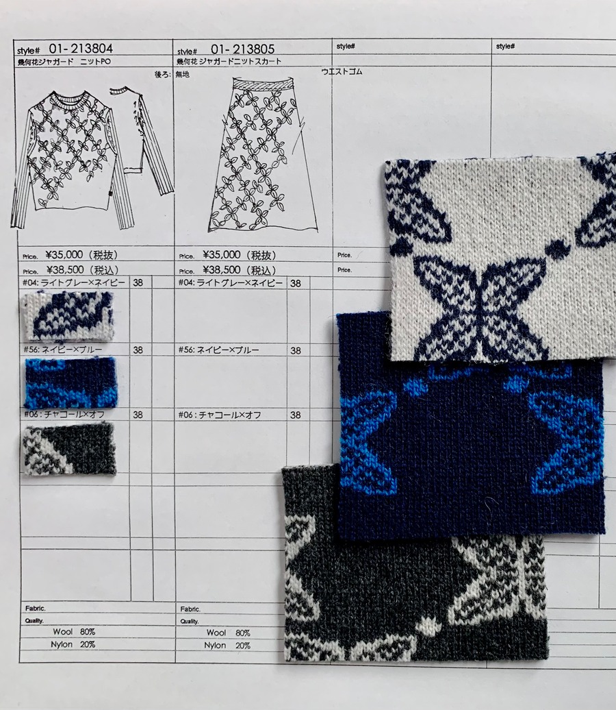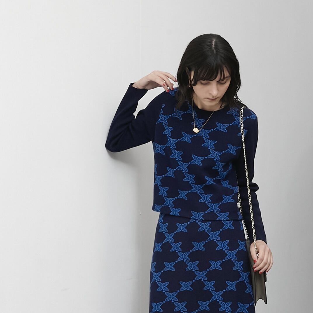 モダンな幾何風の花柄が印象的なジャガード編みです。