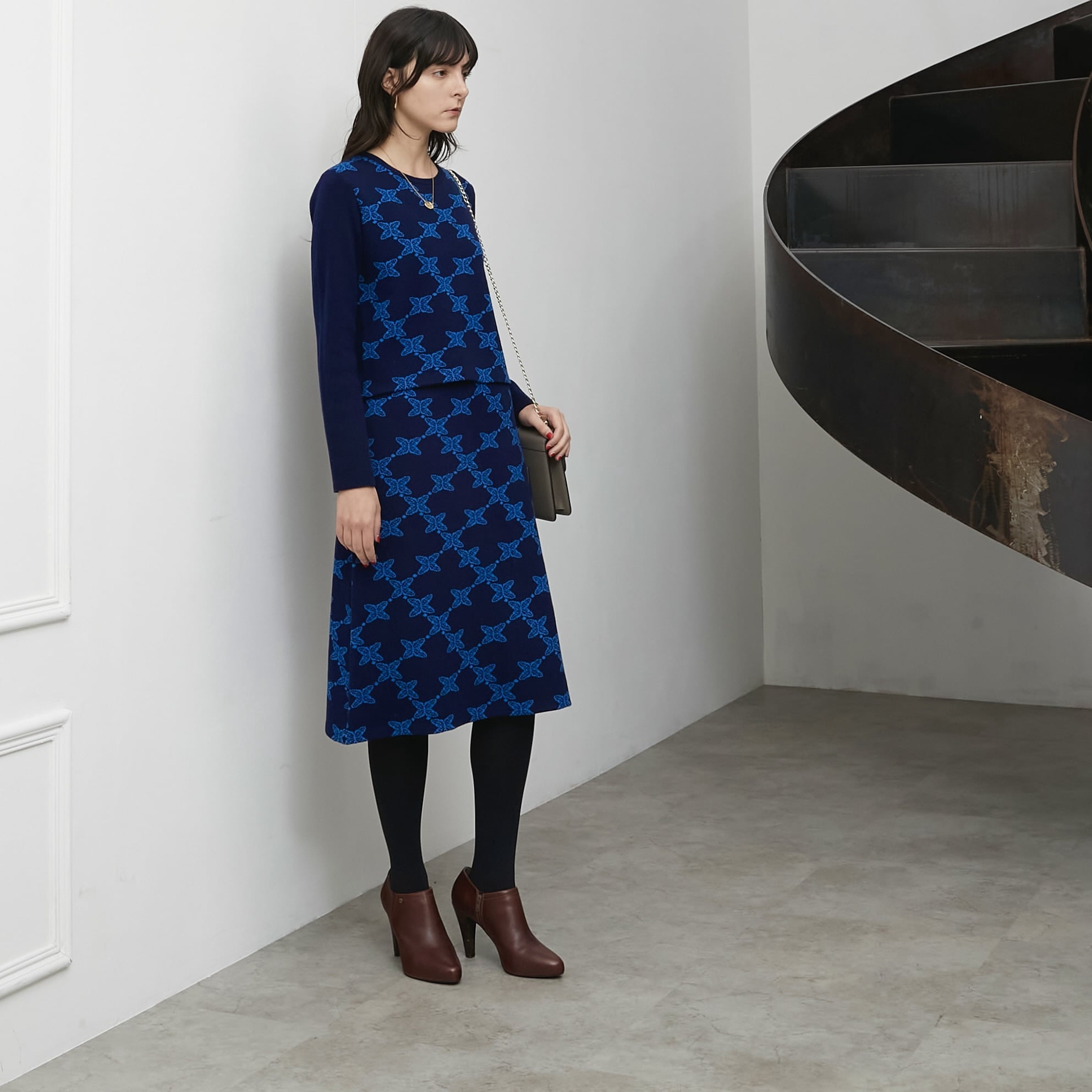 幾何風の花柄が印象的なジャガード編みです。