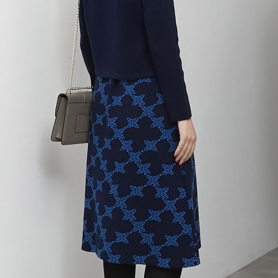 美脚見えする膝丈スカート。
