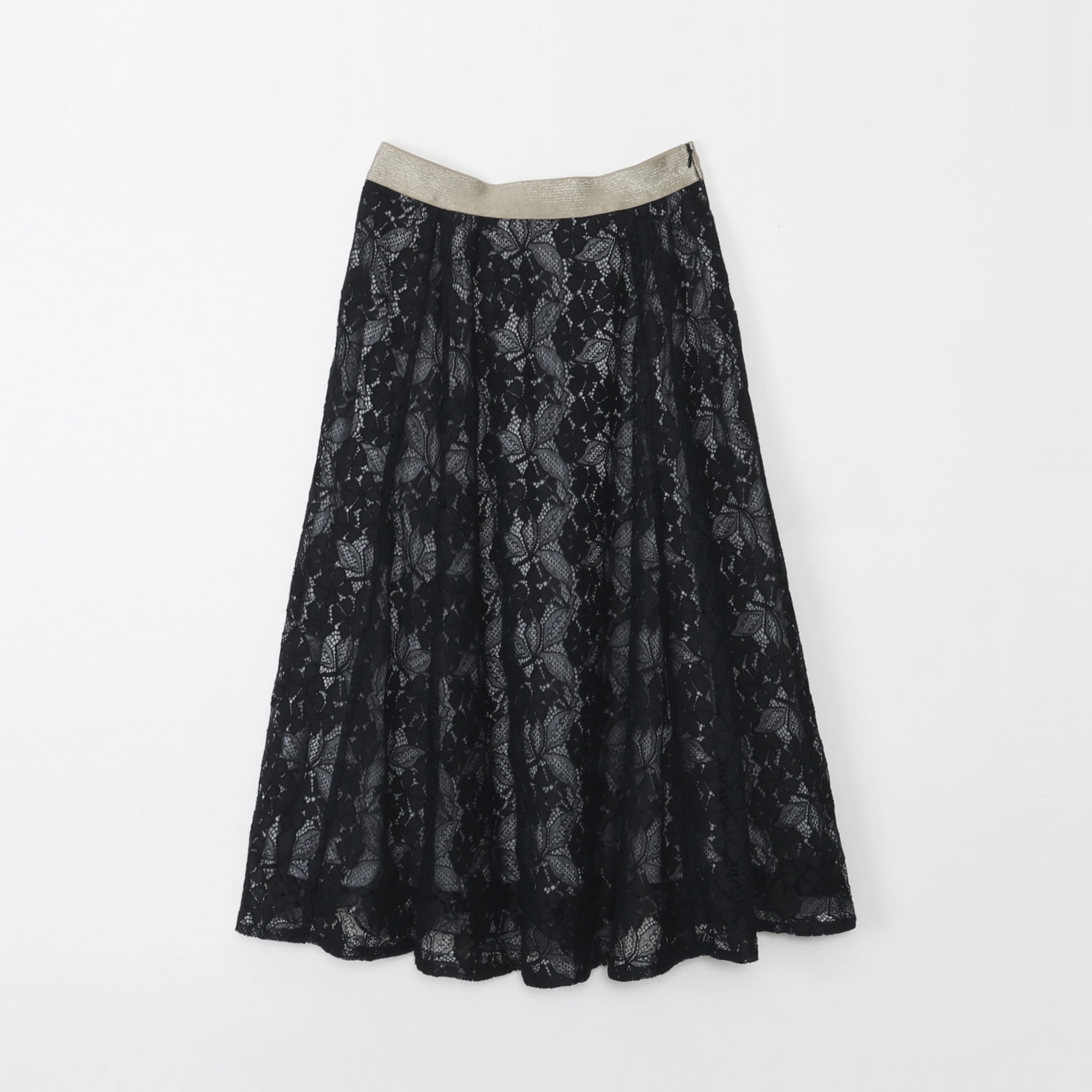 レースをふんだんに使用した贅沢なフレアスカートです。